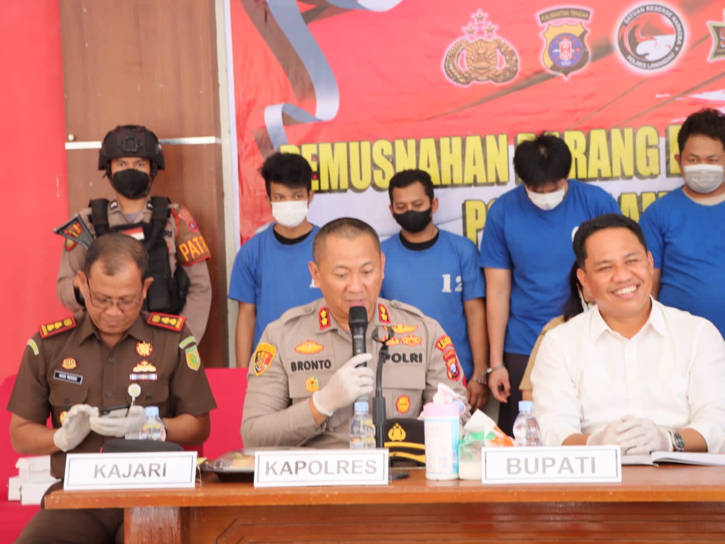 Potretkalteng.com - Lamandau – Kapolres Lamandau AKBP Bronto Budiyono, S.I.K. bersama instansi terkait memusnahkan barang bukti Narkoba jenis sabu dan ekstasi bertempat di Mapolres setempat, Selasa (16/8/2022) sore.