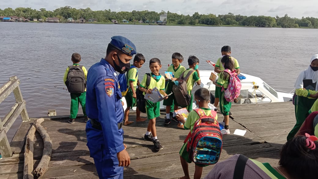 Potretkalteng.com - Pangkalanbun - Ditpolairud Polda Kalteng melalui KP XVIII-1010 Tingkatkan minat membaca anak-anak pesisir dan pantai dengan program Kapal Melek Huruf (KMH), Desa Tanjung Putri, Kabupaten Kotawaringin Barat pada Jumat (25/03/2022) Pagi.