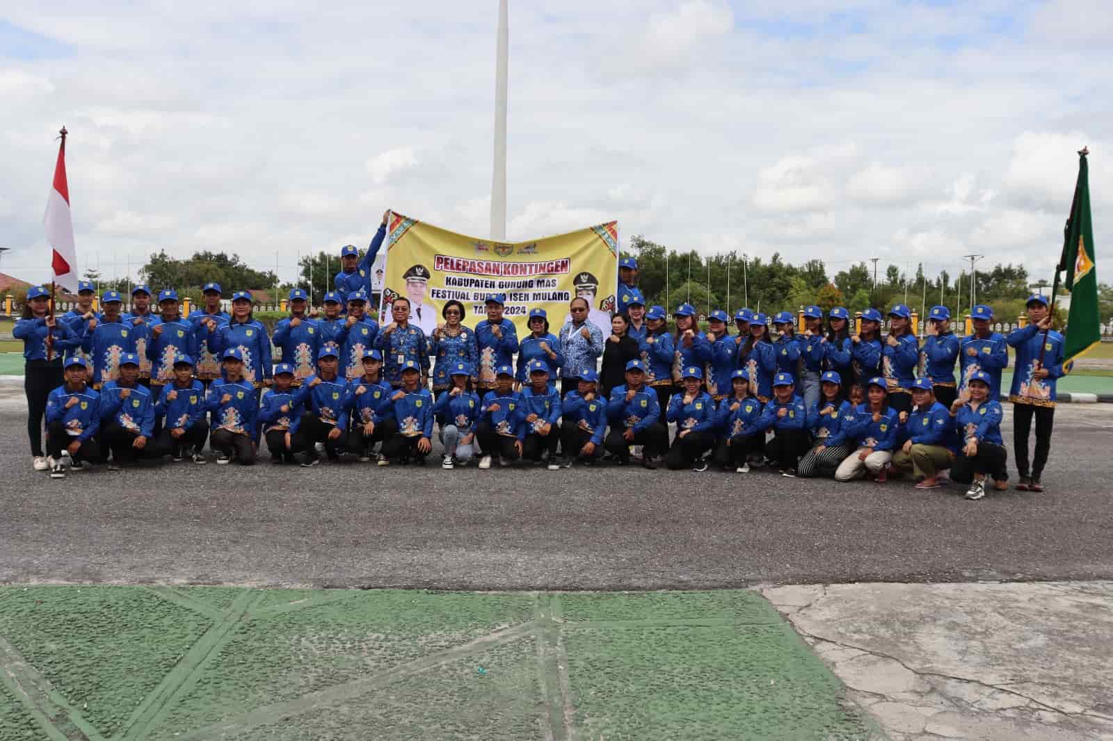 Keterangan Gambar : Pelepasan Kontingen Festival Budaya Isen Mulang (FBIM) Kabupaten Gunung Mas Tahun 2024