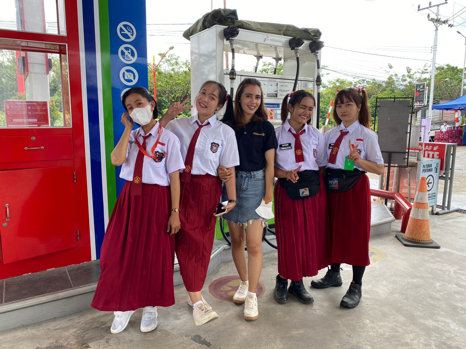 Bertempat di SPBU Yos Sudarso, Rabu (17/8/22) terlihat para Karyawan SPBU menggunakan seragam yang cukup menarik, Yaitu menggunakan tema anak Sekolah Dasar seragam Merah Putih.